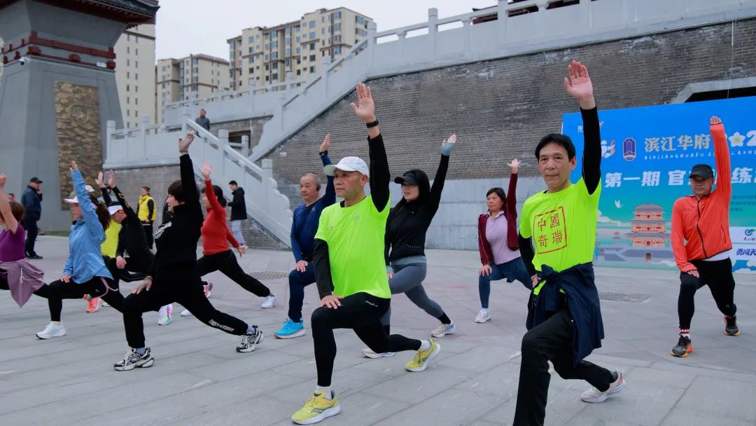 3月29日上午8点,老河口市沿江大道(翔鹤楼公园广场)被跃动的身影点亮。滨江华府·2025老河口半程马拉松官方训练营启动仪式在此盛大举行。