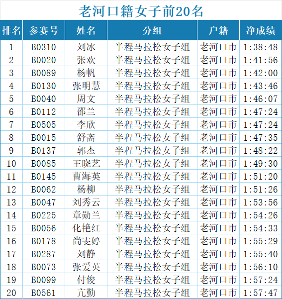 中国田协A1认证赛事,滨江华府·2025老河口半程马拉松已于4月20日圆满落幕。现将获得本次半程马拉松项目男、女前100名,老河口籍贯男、女前20名的名单进行成绩公示。公示期即日起至5月2日截止,在公示期结束后成绩公示无异议及反兴奋剂检测无问题后发放奖金。